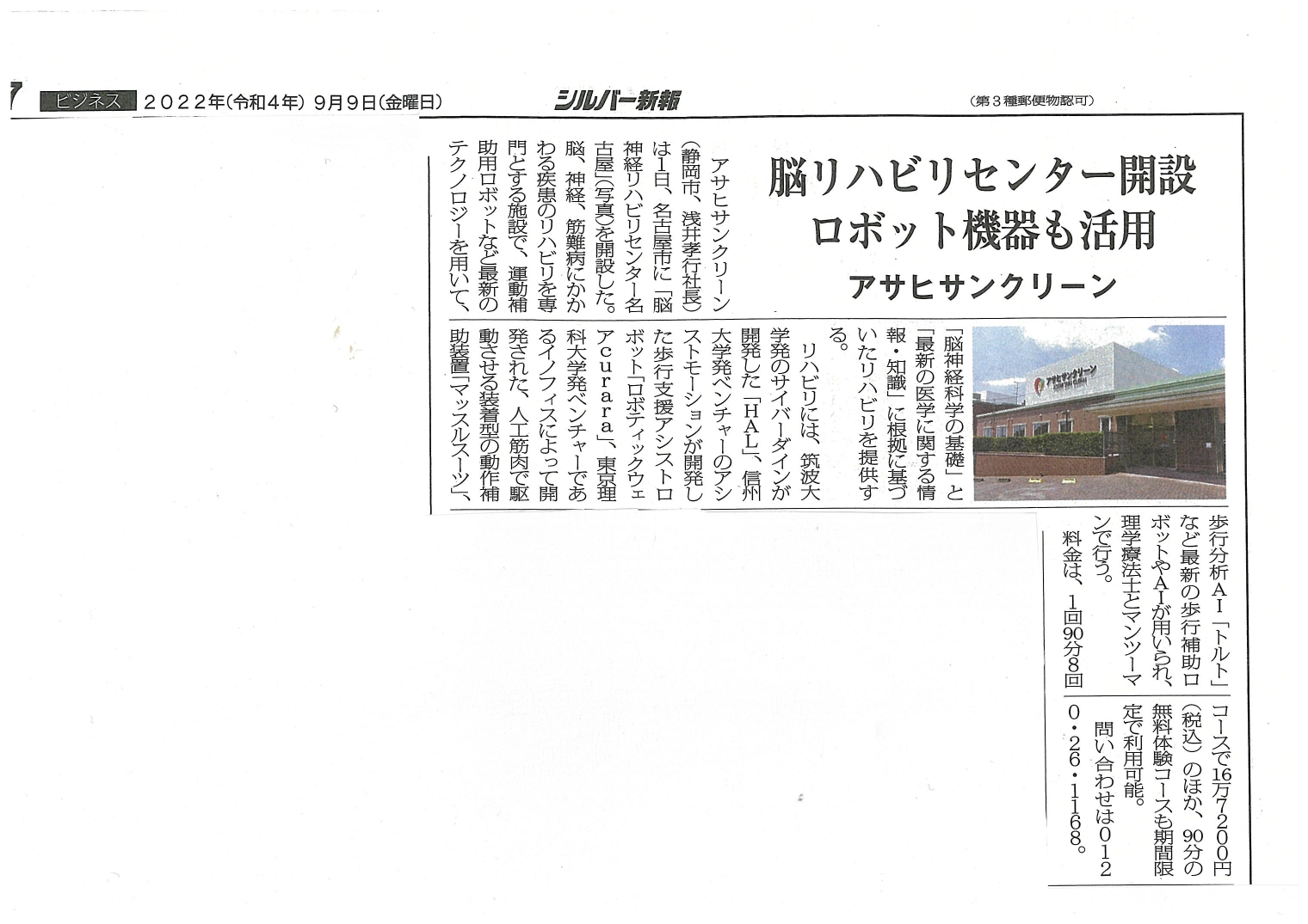 当施設が、シルバー新報(2022年9月9日付)に掲載されました。